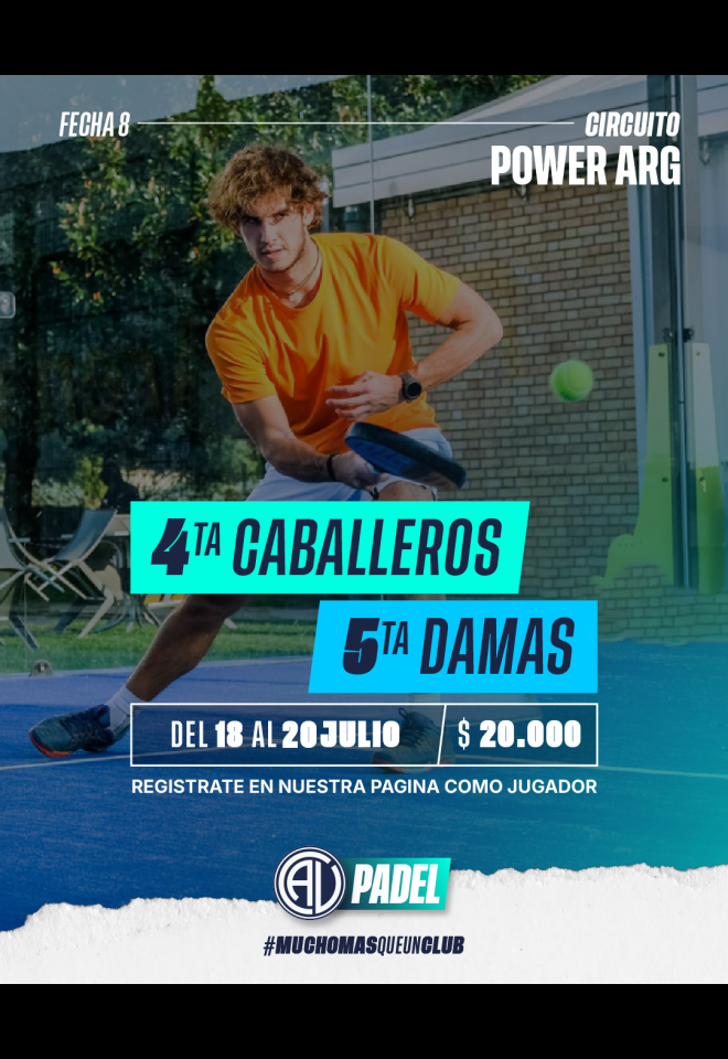»» Evento: POWER ARG - PADELCAV Fecha 8 »» Localidad: General Villegas »» Fechas: 18/07/2025 al 20/07/2025