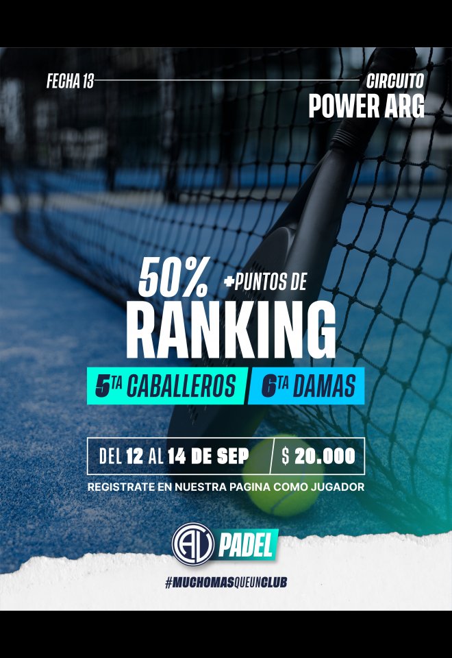 »» Evento: POWER ARG - PADELCAV Fecha 13 »» Localidad: General Villegas »» Fechas: 10/10/2025 al 12/10/2025